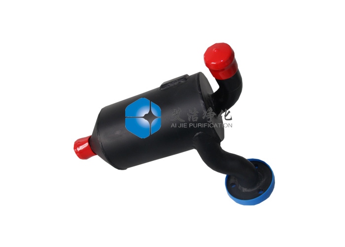 艾潔凈化生產的旋風式油氣分離器是讓氣液混合氣經過切向進氣道或是螺旋進氣道進入分離器內,使混合氣在分離器內旋轉運動,以此產生離心力來實現油滴的分離,它的分離機理與主動離心式油氣分離器相同,只是不需外界提供動力。